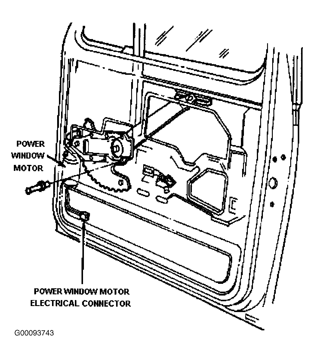 Repair this by removing the door panel turn the armrest bolts and door handle screws counterclockwise then disengage the pop rivets and removing the motor by unplugging it along with the mount bolts.